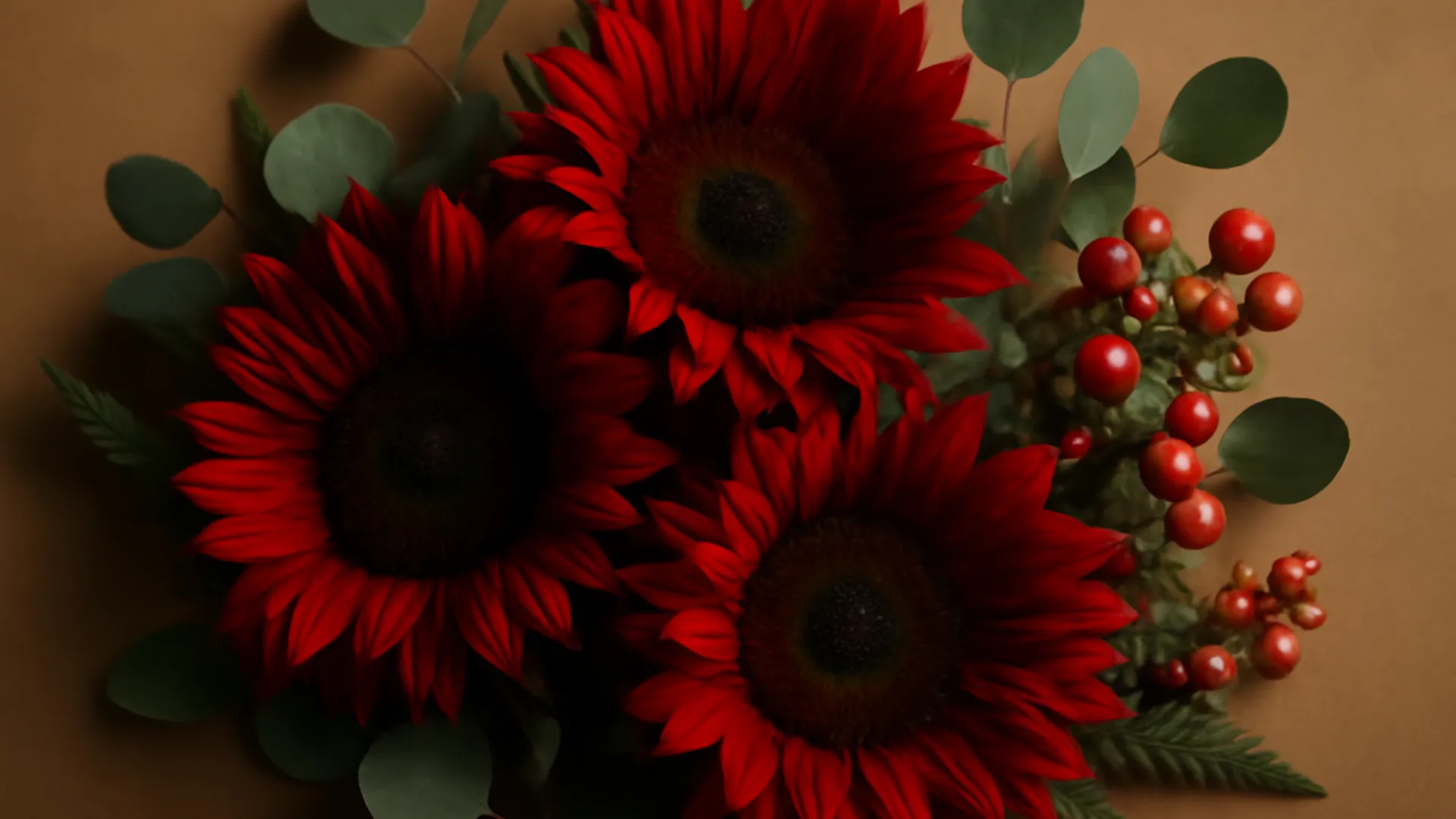 Solsikke i rød variant. Fin i buket, som gave eller når du vill imponere uden at anstrenge dig.